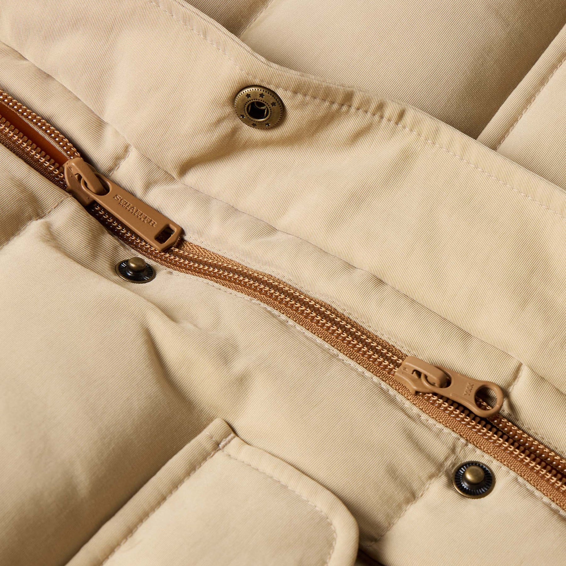 - Two-way zipper with storm flap closure