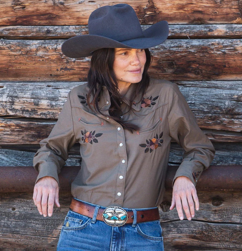 Embroidered snap shirt