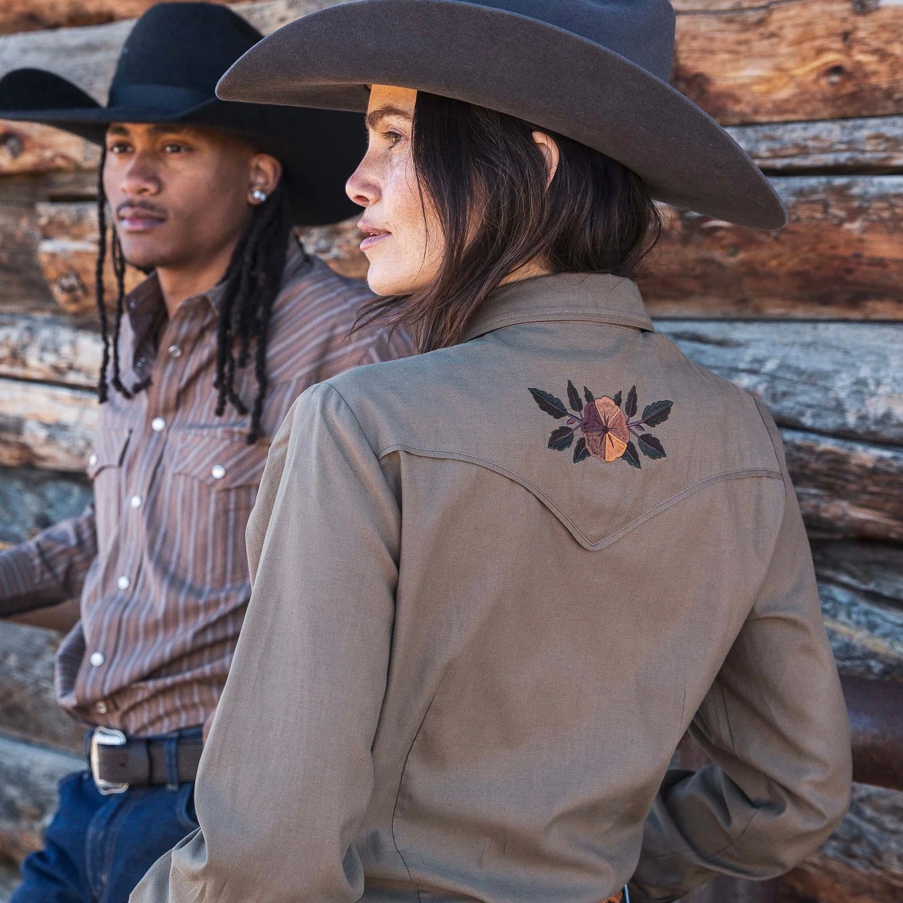 - Floral Embroidery at Front and Back Yokes, Collar, Cuffs, and Below Chest Pockets