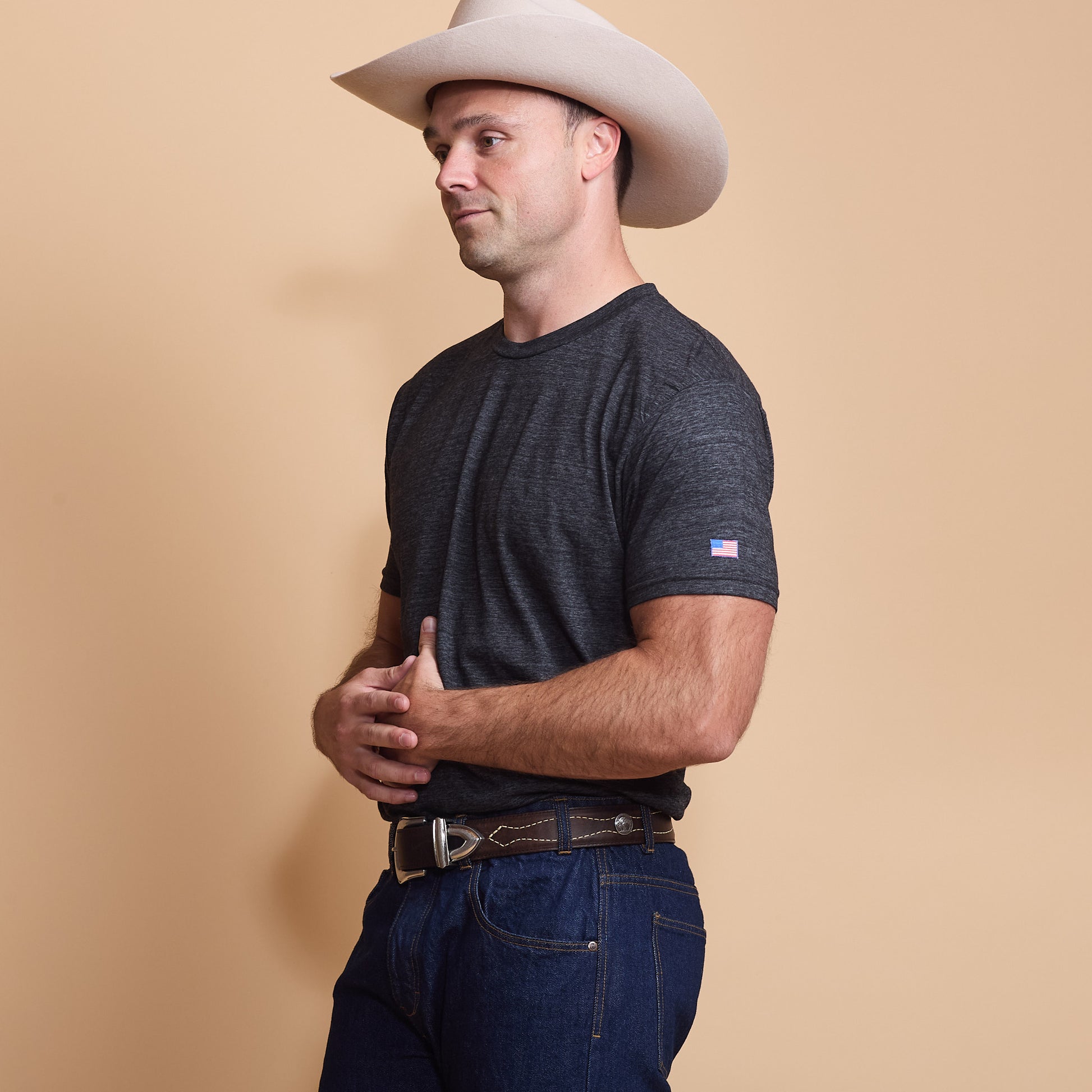 - 4.9 oz, 100% preshrunk ring-spun cotton
