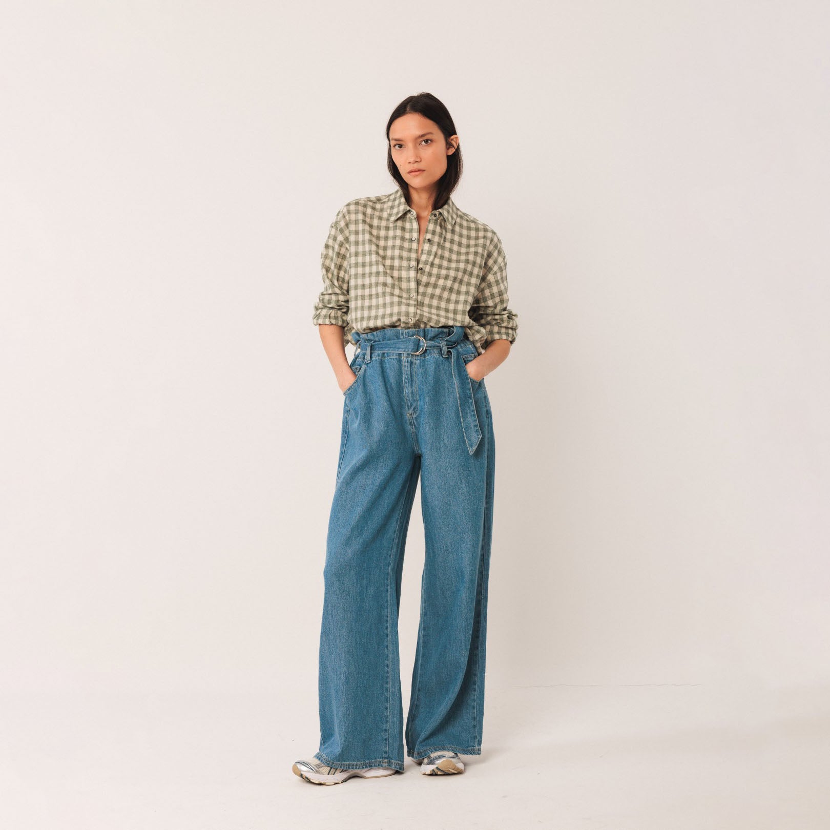 - Slightly dropped shoulder and long sleeves with cuff and button closure