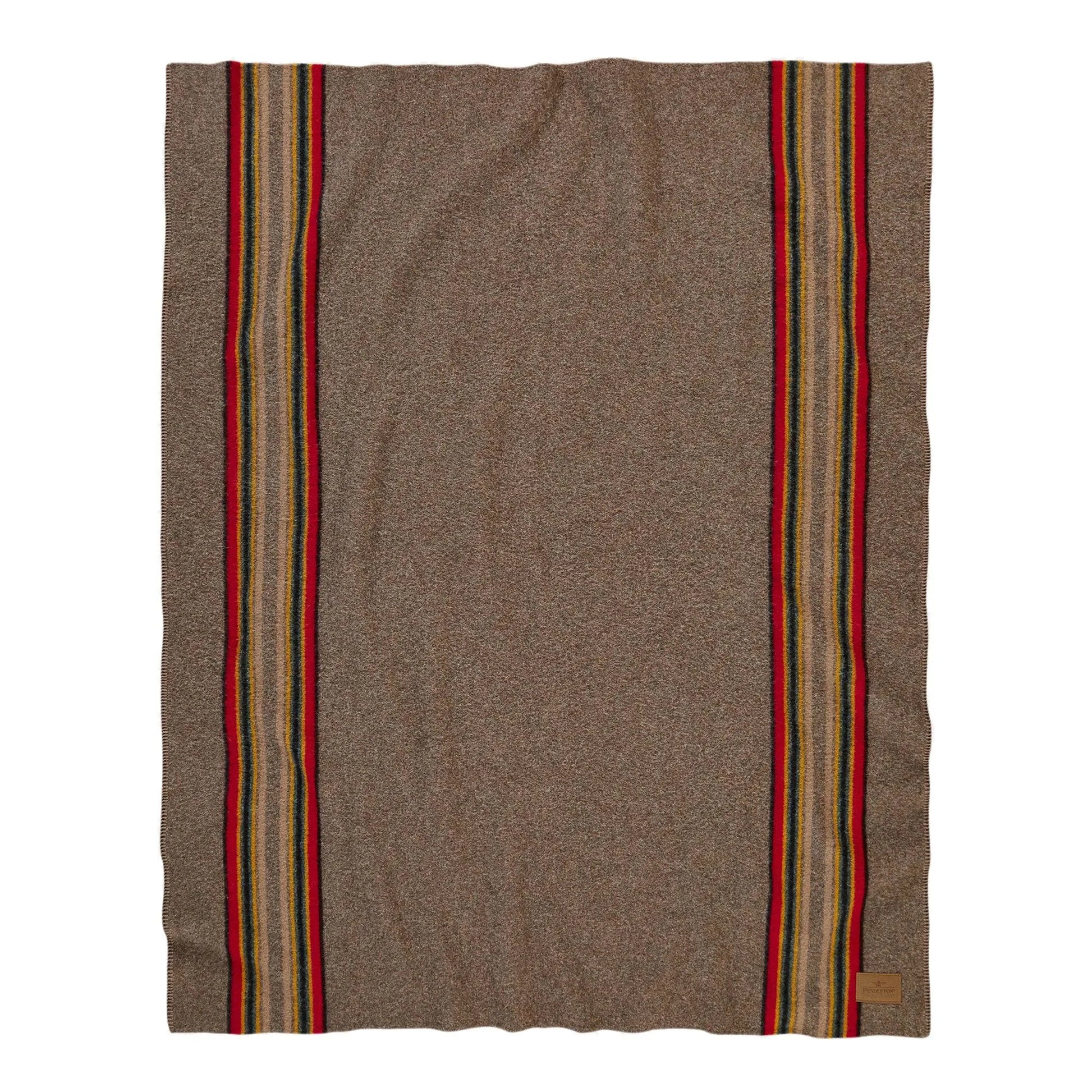 Made-in-America wool camp throw. Camp blankets were originally used by shepherds to brave the elements of the Pacific Northwest—right where these rugged wool versions are still woven today. These smaller sized blankets make a great gift for outdoor enthusiasts. Stripes run vertically.
